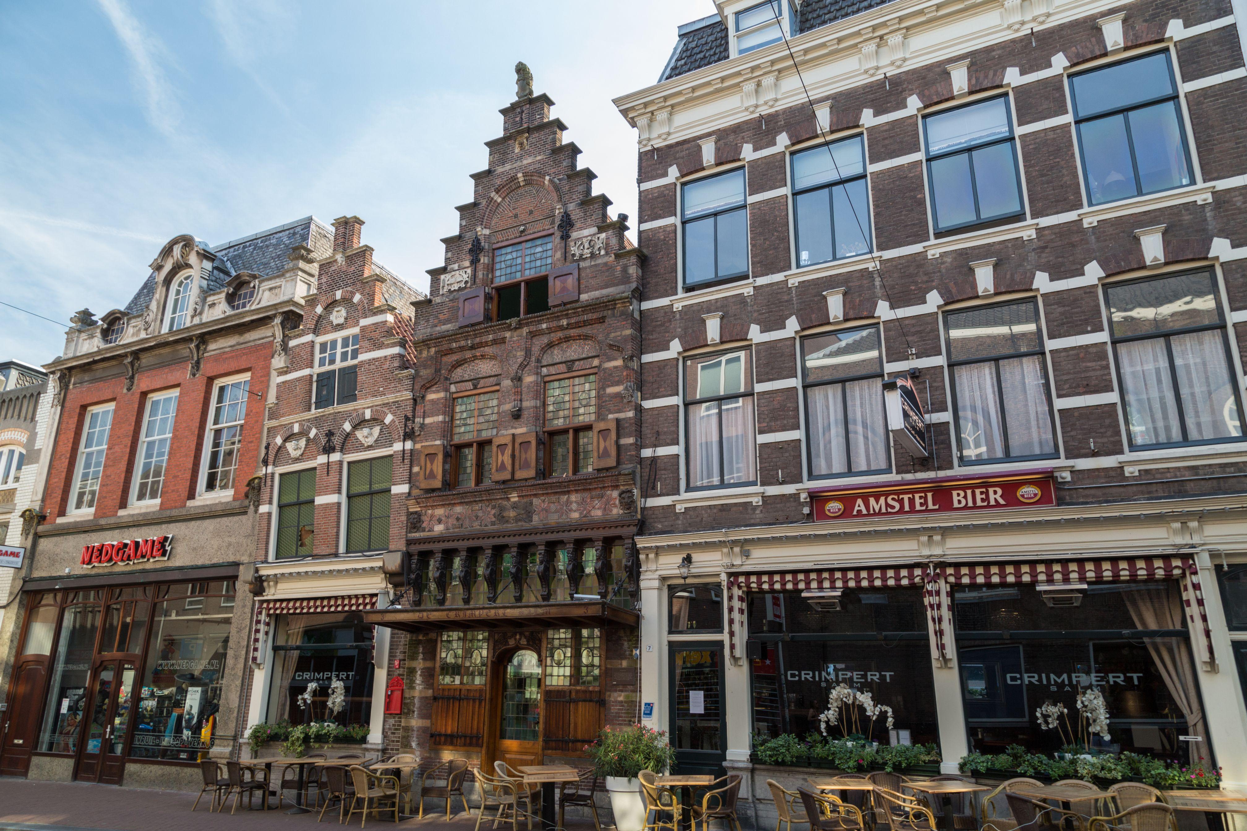 From the Middle Ages, trade was organized from the guilds. This building was commissioned by the Fish Buyers Guild in 1607 and has one of the city's most beautiful Renaissance facades. The building's beautiful stepped gable reflected well the wealth of the guild and attracted many new buyers. Various types of fish were sold on Fish Street. To make the merchandise even more attractive, salmon were beaten first on the nose and then behind the gills, giving them a beautiful pink color. The salmon was then shrink whipped. 'Crimping' became the trade name of the guild, which later changed to Crimpert Salm. The facade from 1608, extensively restored in 1898, is richly decorated with a frieze of masonry mosaic and with heads, lion masks and a top pilaster with coat of arms bearing a lion. Today, the building houses a restaurant of the same name: The Crimp.