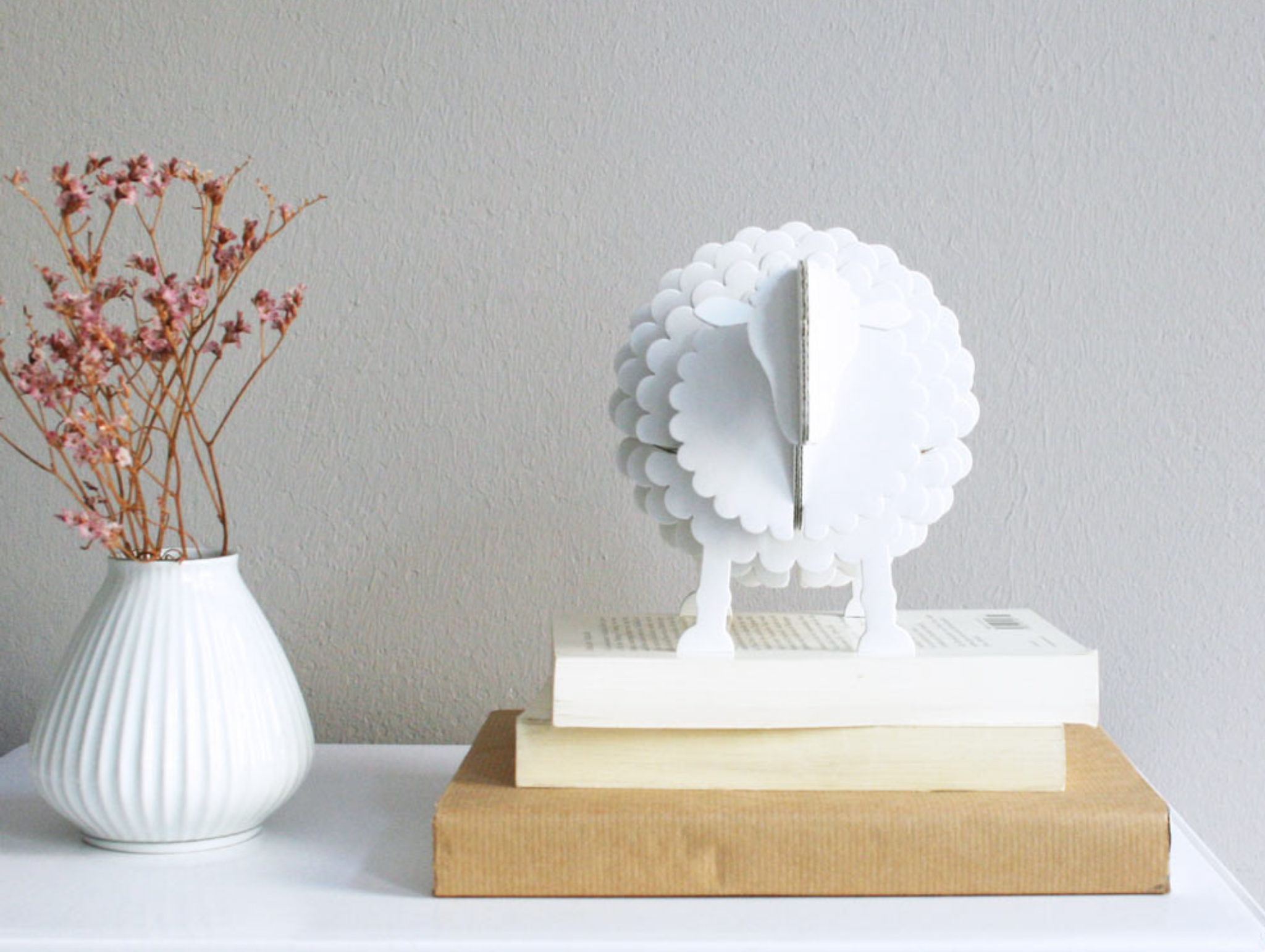 Cardboard sheep Wolly: a cardboard sheep as a decoration. Besides being used as decoration thanks to the mini boards, it is also suitable as a business card holder and as an original gift. Feel like being creative? Color or paint the sheep and you have a beautiful showpiece! On the back are the instructions for assembling the sheep.