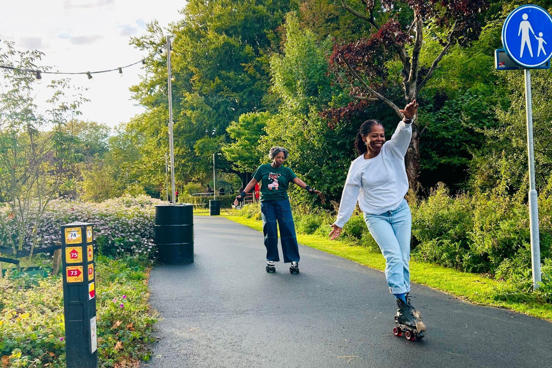 Starting at 5 p.m., music will be playing, disco balls will start spinning in the trees and the park will become more and more lively. Skaters, rollerbladers, children on rollerblades, young and old, all visitors come together to enjoy a beautiful evening and to be active. During the event the park will be (partly) accessible exclusively for skaters. The atmosphere will be further enhanced by atmospheric lighting and music. In addition, food trucks will be present to provide visitors with food and drinks.