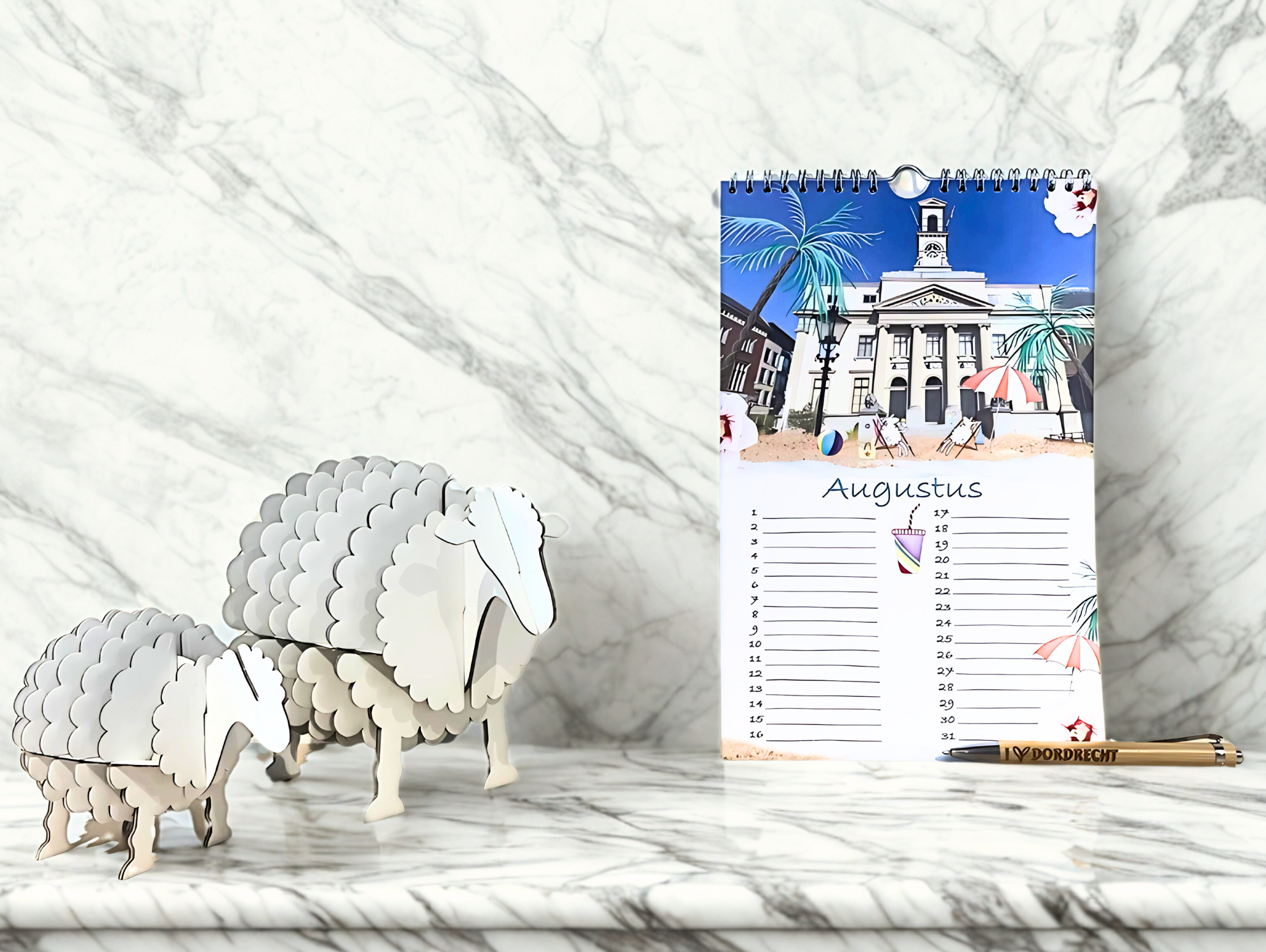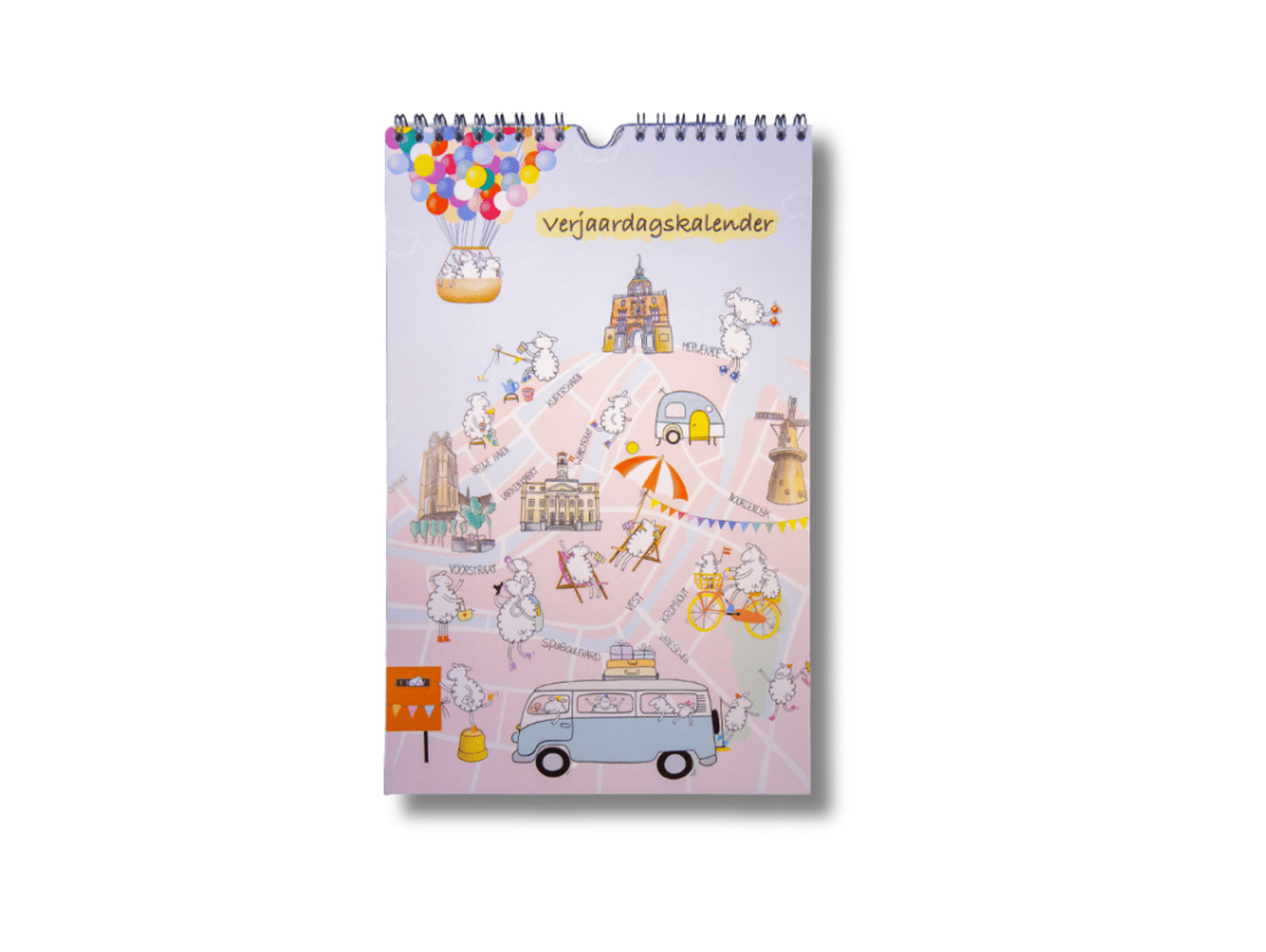 Verjaardagskalender schaapjes: een leuke verjaardagskalender met vrolijke tekeningen van Lucia Zattini. De kalender bevat illustraties van de Grote Kerk, het Stadhuis, het Groothoofd en de molen, met iedere maand een unieke tekening!