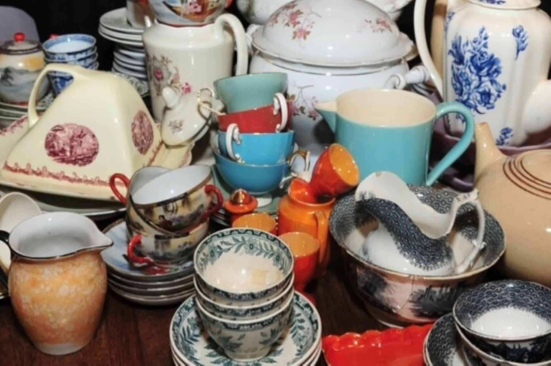 - aardewerk, glaswerk, vazen en servies